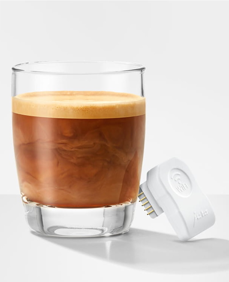 Le JURA WiFi Connect rend l’utilisation de votre machine à café avec JOE via smartphone ou tablette plus facile que jamais et permet la communication avec des accessoires intelligents. JURA WiFi Connect se branche simplement sur la machine à café et offre une connexion rapide et stable. Vous pouvez même connecter simultanément plusieurs appareils mobiles et un accessoire (par ex. Cool Control) à la machine à café via WiFi.