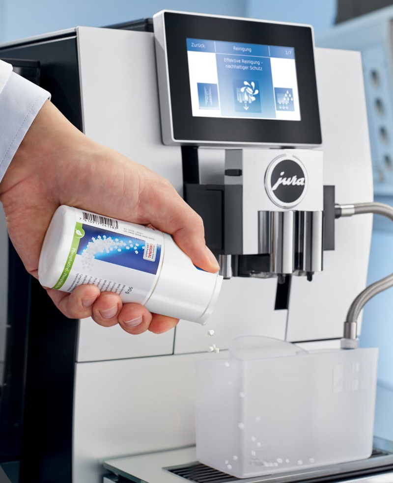 REF: 7610917241576 Grâce à la technologie de mousse fine JURA, vous pouvez déguster des spécialités de café telles que le latte macchiato, le cappuccino, le macchiato ou le flat white dans une qualité exceptionnelle. Pour garantir cette qualité, nous avons développé un nettoyant pour système de lait sous forme de mini-tablettes. Associées au programme de nettoyage automatique, elles éliminent efficacement les graisses et les protéines du lait. Les tubes restent ainsi propres et hygiéniques pour une mousse de lait fine et légère comme l'air.