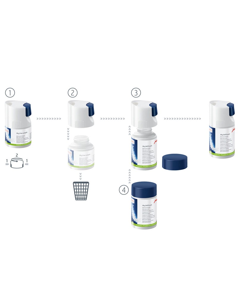 Grâce à la technologie mousse fine brevetée de JURA, chaque cappuccino, latte macchiato ou flat white est une réussite. Ce nettoyant joue un rôle essentiel pour préserver cette qualité en évitant toute altération du goût ou de la texture liée à un système encrassé.