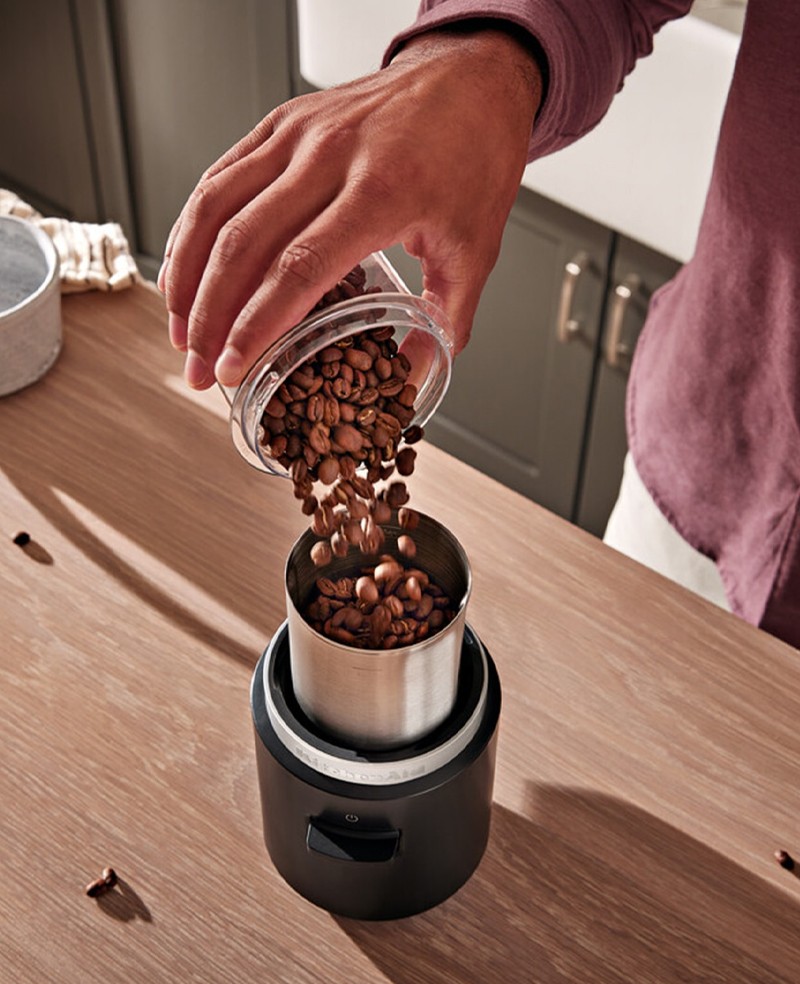 Le moulin à café sans fil KitchenAid GO a été conçu pour les amateurs de café nomades. Que vous soyez à la maison, en vacances ou au camping, ce moulin compact vous accompagne partout. Il vous suffit d’insérer la batterie rechargeable 12 V (vendue séparément) et de presser le bouton pour obtenir une mouture fraîche, à votre goût.